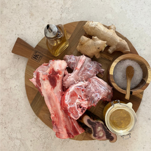 INGREDIENTES: Agua, huesos de ternera 22%, carcasas de pollo 20%, huesos de jamón 2,3%*(hueso de jamón de cerdo ecológico y sal marina), vinagre de manzana, jengibre, sal marina, cúrcuma.